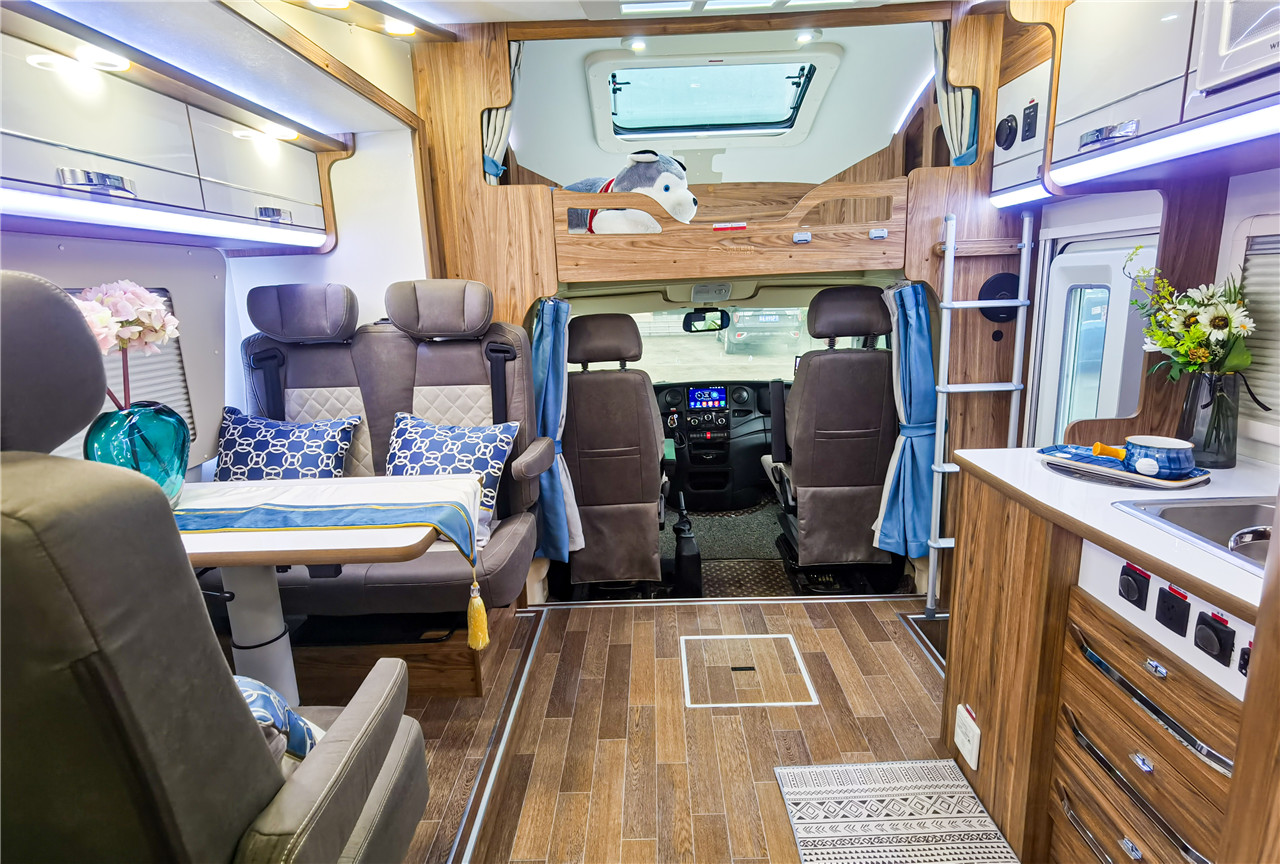 | 正副駕駛椅包 (中間菱形格) | 豪華衛(wèi)浴間 (ABS吸塑工藝) | 升降桌板(進(jìn)口單腿) | ||||||